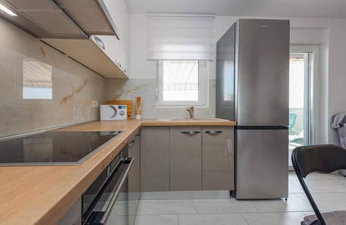 Bienvenido a este acogedor apartamento, donde la sencilla elegancia del mobiliario crea un ambiente agradable y acogedor. Desde aquí se divisa el mar en el horizonte. Un lugar perfecto para planificar las actividades del día con la familia. También puede relajarse en la zona de estar con un buen libro o una emocionante película. Los gourmets aficionados encontrarán todo lo que desean en la moderna cocina. Desayune en el balcón, que le invita a quedarse y relajarse. Deleite a toda la familia con una deliciosa comida en la barbacoa de la terraza.