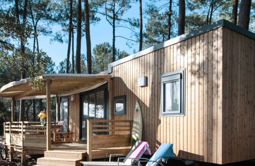 Resort "Ecolodge Green Resort", bonito, rodeado de árboles. 32 casas en el complejo. A 2.5 km del centro de Ondres, a 13 km del centro de Bayonne, a 20 km del centro de Biarritz, a 1.4 km del mar, en una calle sin salida. Comunitario: terreno 4 ha (vallado) con árboles, jardín natural, piscina climatizada, vallada (25 x 10 m, 140 cm de profundidad, Disponible por temporada: 01.Ene. - 31.Dic.) con sistema de limpieza por electrolysis de sal. WC en zona de piscina, ducha exterior, petanca, voleibol playa, parque infantil. En el complejo: recepción, Wifi, lavadora, secadora (uso comunitario, extra), alquiler de bicicletas. Servicio a domicilio de panecillos. Aparcamiento (número limitado) junto a la casa a 200 m. Supermercado 2.5 km, parada autobús "Saint Robert (23)" 900 m, playa de arena 1.4 km. Campo de golf (18 hoyos) 15 km, centro ecuestre 300 m. A tener en cuenta: complejo de vacaciones sin coches. Animación en la temporada. Carga y descarga de equipaje posible en la casa de vacaciones. Residencia con puertas de cierre eléctrico. La foto corresponde a una de las viviendas. Los alojamientos pueden diferir en la ubicación, el tamaño y las caracterísiticas del terreno.