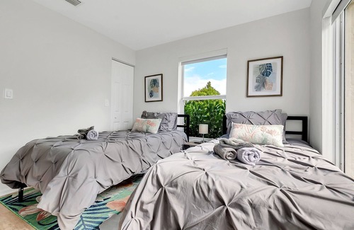 Welcome home! come in and relax in this completely renovated home located in a quiet residential neighborhood on a tree lined street. Brand new bathrooms and a new kitchen. New stainless steel appliances. Cheerful and bright furnishings, with all new linens and a stocked kitchen. Parking for 2 cars in driveway w/plenty free street parking. High speed WIFI with TVs in every room. Enjoy the backyard shaded dining area with a brand new gas grill to enjoy the Florida weather.