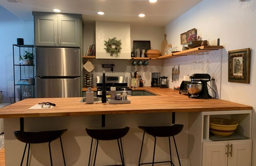 Al instalarte en este alojamiento de 1 dormitorio y 1.5 baños, encontrarás una sala de estar, un sofá cama, chimenea y escritorio. El cuarto de baño incluye un secador de pelo, toallas y papel higiénico. La cocina está equipada con horno, placa de cocina y frigorífico, además de cafetera y tetera, hervidor eléctrico y máquina de hielo. Y como podrás aprovechar la lavadora y la secadora, no te hará falta llevar mucho equipaje.