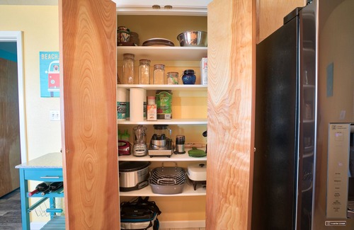 La cocina, muy bien equipada, cuenta con todos los nuevos electrodomésticos de gama alta, utensilios de cocina de acero inoxidable, platos de cerámica y una selección completa de utensilios de cocina y electrodomésticos pequeños, junto con una buena selección de especias y elementos básicos de cocina para brindarle todo lo que necesita para preparar una comida gourmet. o una pizza rápida. ¡Incluso ofrecemos café orgánico!