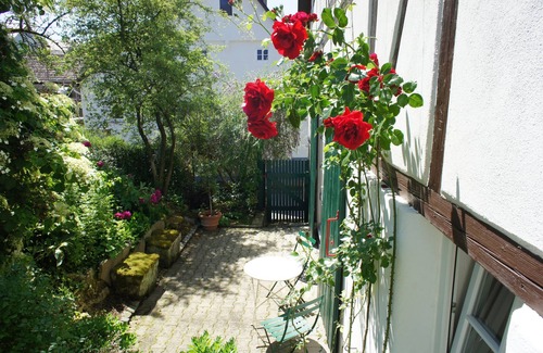 El aserradero de 73 metros cuadrados es un loft reformado con mucho amor con terraza y jardín. Es parte de una pequeña y antigua bodega catalogada en el centro de Kirchberg an der Murr, a unos 25 minutos al norte de Stuttgart. Y se encuentra entre Backnang y la ciudad Schiller de Marbach.