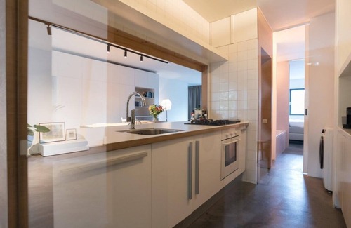 La cocina está equipada con horno, placa de cocina y frigorífico, además de cafetera y tetera y utensilios de cocina. No necesitarás llevarte mucho equipaje, porque hay acceso a una lavandería. Otras comodidades incluyen ropa de cama, una tabla de planchar, aire acondicionado y calefacción.