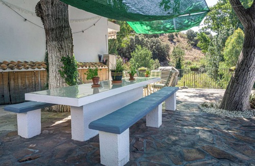 El espacioso jardín ofrece muchas oportunidades para relajarse y sumergirse en la atmósfera serena de la campiña española, lo que lo convierte en el lugar perfecto para relajarse con una bebida fría o disfrutar de la belleza natural que lo rodea.