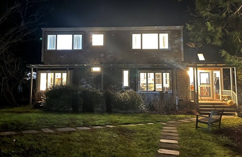 Nuestra encantadora casa de 4 dormitorios con una casa de huéspedes separada en un lote tranquilo de 1/2 acre está en el borde de West Chop, convenientemente ubicado a 1 milla del centro de Vineyard Haven. Con 6 áreas diferentes para dormir, aire acondicionado recién agregado, amplio porche, terraza, patio grande, 2 lavadoras / secadoras y 3 baños, la casa es ideal para una familia extensa, dos familias o un grupo de amigos. ¡Nos encanta nuestro hogar limpio y acogedor y esperamos que tú también lo hagas!