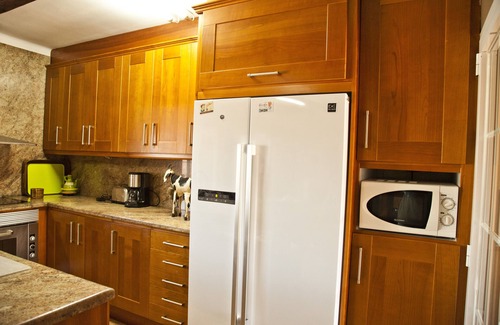 Espaciosa casa muy cerca de Palma. La casa es muy grande. Tiene una terraza con piscina, hamacas, zona cubierta para comer y Chill out. Pista de tenis con porterías de futbol. Un garaje con BBQ y también grandes jardines. Los espacios interiores son muy amplios; consta de salón comedor con un gran mesa, cocina, 4 habitaciones dobles y 3 baños.