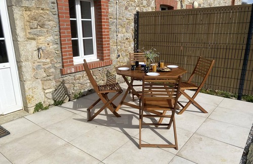 Casa contigua a la de los propietarios. Planta baja: Salón con sofá cama (TV, acceso a internet). Cocina integrada al salón (placa de inducción, cafetera exprés, horno eléctrico, microondas, lavavajillas, frigorífico-congelador). Cuarto de máquinas (lavadora). Planta alta: dormitorio en entreplanta (cama de 160x200 y sillón) y baño contiguo con inodoro (lavabo y ducha). Terreno de 3 hectáreas sin vallar. Patio de grava para aparcamiento. Jardín privado sin vallar. Terraza. Spa privado disponible todo el año. Mobiliario de jardín. Sombrilla. Calefacción con bomba de calor. Todos los gastos incluidos. Sábanas y toallas incluidas. Limpieza incluida. Equipamiento para bebés bajo petición. Posibilidad de alojar caballos (refugio y prado). Se admiten mascotas, hasta un animal por estancia (suplemento). Los propietarios de esta antigua casa de campo de 1893 quisieron rendir homenaje a «Camille», una niña que vivió en esta casa y que grabó su nombre en un ladrillo durante las reformas de principios del siglo XX. En este entorno verde y la campiña de Cotentin, Mathilde y Matthieu han revitalizado esta casa y hoy les ofrecen una estancia tranquila... Un punto culminante de su estancia: el spa privado, que les brindará un momento de relajación y bienestar innegable. El alojamiento tiene capacidad para 2 o incluso 4 personas (hay camas supletorias disponibles). Numerosos paseos por los alrededores harán las delicias de los amantes del senderismo. El río "La Gloire" fluye cerca de la casa rural, regalándole el relajante sonido del agua. A poca distancia de la RN13 (4 km), también podrá descubrir los numerosos atractivos turísticos de los alrededores: Barfleur, Saint-Vaast-la-Hougue, las playas del desembarco del Día D y muchos otros.