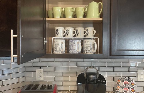 La cocina ofrece una licuadora, cafetera, sándwich y fabricante de gofres, batidora, tostadora y mucho más, lo que facilita la preparación de comidas especiales.