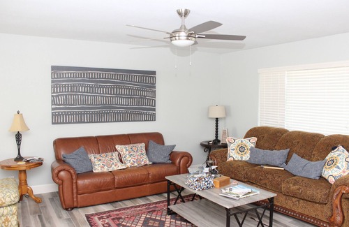 1/2 MILLA DE PASEO A LOS PUENTES DE CRISTAL, CERCA DEL CICLO DE LA PLACA DE RESPUESTA Y DETRÁS DE 40 CICLOS TRAIL-1/2 LA MILLA DE PASEO HASTA EL CENTRO DE LA CIUDAD. Bienvenido a la mejor ubicación de casa posible en la ciudad. A media milla del centro de la ciudad, Crystal Bridges, Amazeum, rutas de ciclismo y senderismo, oficina general de Wal-Mart, Memorial Park, piscinas de la ciudad y restaurantes de moda. También ofrece proximidad a empresas y corporaciones locales. Se encuentra en un entorno residencial tranquilo ideal que atrae a individuos, parejas, familias y niños. Todos son bienvenidos y serán tratados con el mayor respeto y atención posible. Esta hermosa casa cuenta con una gran sala de estar y cocina y un plano de planta abierto con desayunador y barra de granito en el baño, dos sofás grandes, una silla mecedora, una televisión de 50 pulgadas, una gran mesa de comedor de madera con asientos recientemente tapizados, aspecto de madera Baldosa, calor y aire cómodos, amplia iluminación, nueva puerta corrediza de vidrio que sale del comedor. Cuenta con 3 habitaciones con televisión, wi-fi e internet, 2 habitaciones cada una con una cama king size, una habitación con una reina con cajones en cada habitación. Se proporcionan mantas. Se proporciona café, té y azúcar. Todos los platos de cocina, cubiertos, utensilios de cocina, vasos se proporcionan. El desayuno es por su cuenta. También ofrecemos un garaje de gran tamaño perfecto para el ciclista. Todas las habitaciones han sido decoradas con buen gusto. Si prefieres la comodidad tranquila en un lugar perfecto para caminar a la ciudad por vacaciones o empleo, para una fiesta nupcial para dormir y cambiar, alojamiento corporativo o solo R & R, Farmhouse Fresh Retreat es para ti. Usted no será decepcionado. Los propietarios viven dentro de los diez minutos de este lugar y le ayudarán amablemente de cualquier manera posible. ¡Quieren que tu estancia sea lo mejor posible!