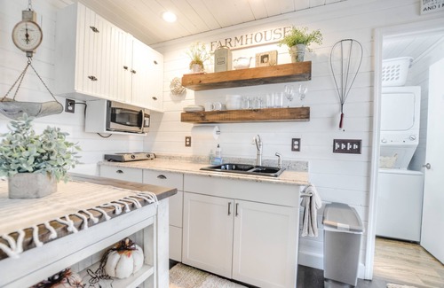 Maggie's Farmhouse Cottage es una cabaña de 312 pies cuadrados en las Montañas Humeantes, con decoración rústica vintage y vistas a la montaña. La habitación principal consta de una cama tamaño queen, TV de 42 "con canales vía satélite y zona de cocina con asientos para cenar. Un baño completo incluye una lavadora / secadora y ducha mejorada. Se adapta fácilmente a las parejas que buscan privacidad y y es idóneo para el viajero solo. Una pequeña área de parrilla y una cubierta delantera cubierta con asientos al aire libre hacen sentir como si estuvieras en un oasis privado en el bosque.