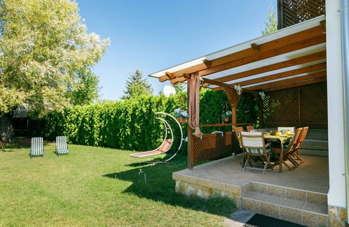 Zamárdi a 12 km de Siófok: Casa semiadosada "Aurora", bonita del año 2007. Lugar soleado, a 200 m de un lago, a 800 m de la playa. Privado: terreno 200 m2, terreno con hierba. En el inmueble: lavadora. Tienda de comestibles, restaurante 150 m, playa de césped 200 m. Vivienda adecuada para 6 adultos + 1 niño. A tener en cuenta: vías del tren en la proximidad.