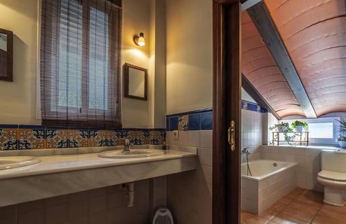 La casa está amueblada con gran atención al detalle. Aquí las familias o los grupos pueden disfrutar del estilo andaluz. La casa tiene piscina propia, terraza barbacoa, parque infantil y embarcadero propio al lago y se facilitan los kayaks. Otro punto a destacar es un pequeño zoológico de mascotas donde incluso puedes obtener los huevos del desayuno de los distintos nidos por la mañana. ¿Te gustaría pescar tu propio pescado para la barbacoa posterior? Nada se interpone en el camino de eso tampoco. En el lago hay un jardín del lago con bar y restaurante donde podrá probar las especialidades locales. También hay una piscina al aire libre muy cerca, que merece la pena visitar especialmente para los más pequeños. El área de Las Jaras es un área recreativa, los amantes de la naturaleza tienen aquí una fantástica variedad de actividades de todo tipo. La casa está equipada con bicicletas, por lo que nada se interpone en el camino de un recorrido. Cada casa también ofrece kayaks con los que se puede explorar el lago "La Encantada". Los entusiastas del senderismo obtendrán el valor de su dinero en Sierra Morena: las rutas de senderismo de todos los niveles de dificultad comienzan directamente desde la casa. En el sitio, por supuesto, puede elegir su ruta usando mapas. El lago con agua clara muestra su fondo, en algunos lugares incluso hasta 4 metros. A tan solo 10 km del centro de Córdoba, puedes combinar actividades en Sierra Morena con visitas a esta increíble ciudad, declarada Patrimonio de la Humanidad por la Unesco. A destacar: Wifi, Gastos de energía en función del consumo, Ropa de cama, toallas, Limpieza final, Welcome pack Movilidad: No apto para personas con movilidad reducida.
