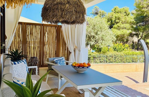 Esta casa de vacaciones independiente muy bien cuidada y muy moderna en el suroeste de Mallorca tiene el factor absoluto de bienestar y se encuentra en una ubicación absolutamente tranquila pero céntrica. La casa está a solo unos 50 metros del mar Mediterráneo.