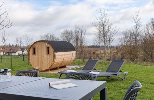 Distribución: Planta baja: (vestíbulo(váter), salón(TV(cable)), cocina(tetera, cafetera(filtro), horno microondas, lavavajillas, nevera(+ congelador)), dormitorio(cama doble o 2 camas individuales), cuarto de baño(bañera, lavabo), trastero) En la 1ª planta: (dormitorio(cama individual, cama doble o 2 camas individuales), dormitorio(cama individual, cama doble o 2 camas individuales), cuarto de baño(ducha, lavabo), rellano(váter)) sauna(privado), puertas de jardín, calefacción(central), terraza, jardín, muebles de jardín, tumbonas, piscina(compartido con otros huéspedes, cubierta)