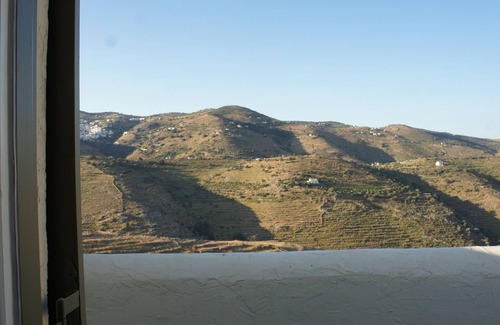 Pequeña villa con vista panorámica a todas las direcciones. Un lado del mar y el otro un paisaje tradicional de KEA coronado por la capital de la isla Ioulis.