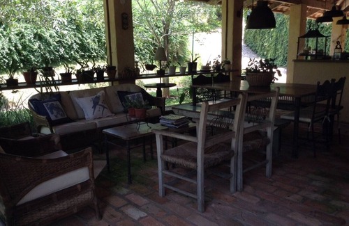 6 suites, 1 sala de estar grande (3 habitaciones) con baño, mesa de billar de tamaño profesional, barbacoa, horno y estufa de leña, piscina y presa.