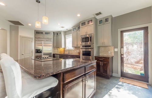 5 habitaciones, 4 baños en casa en 3 acres. Puerta privada Piscina y jacuzzi, muelle con camino al lago Travis (brazo del río Pedernales). Sala de juegos con mesa de billar y TV de pantalla grande. 2 patios cubiertos, arriba y abajo. Hoyo de fuego con vistas al hermoso lago Travis. Al lado de los restaurantes Apis y Sorelina, al otro lado de la calle de la tienda de conveniencia, a solo un kilómetro de distancia del famoso Poodies Roadhouse, Angels Icehouse y varios otros fabulosos restaurantes.