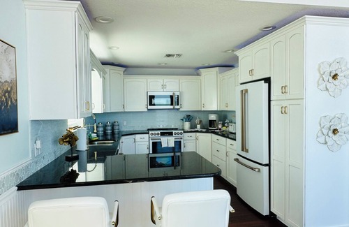 Escápese a esta encantadora casa frente al mar en Melbourne Beach, Florida. Con 6 habitaciones, que incluyen 1 cama tamaño king, 4 camas tamaño queen, 2 camas individuales y 1 futón tamaño queen, esta magnífica propiedad ofrece mucho espacio para que los huéspedes se relajen. Esta casa se puede dividir en 3 familias para disfrutar de la compañía de todos, pero también tener su propio espacio privado.