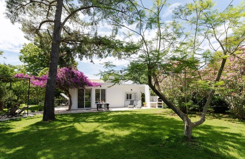 Casa de playa, independiente, en una propiedad más grande, 2 dormitorios, 1 baño (que consiste en un cuarto de baño independiente para relajarse y un segundo cuarto de baño), cocina totalmente equipada, lavavajillas, lavadora, sala de estar con acceso directo a jardines , a pocos metros del agua de mar. Las habitaciones tienen aire acondicionado y mosquiteros. Se proporciona estacionamiento en la propiedad.