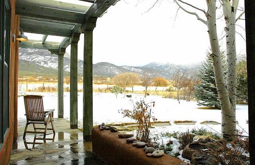 Para aquellos que les encanta cocinar la cocina está amueblada con nuevo tope de la línea de electrodomésticos. Con algunas de las mejores vistas de cualquier tabla en Taos tiene, usted puede mirar por las ventanas y maravillarse con las montañas mientras disfruta de sus comidas de la mesa de comedor. Si usted está buscando para disfrutar del tiempo estrellado cielo nocturno sin precedentes Visitas No es un hermoso patio con pozo de fuego para mantener el calor mientras que usted está mirando hacia el cielo. Este exclusivo 4 dormitorios y 3 baños casa, capacidad para 8 personas. El dormitorio principal, situado en el lado opuesto de la casa de los otros 3 dormitorios lo convierten en una escapada muy privado. El baño principal cuenta con una bañera grande con excelentes vistas de Taos montaña.