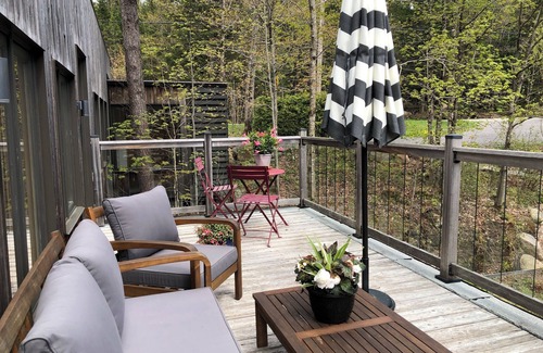 Esta casa contemporánea cuenta con vistas, así como acceso directo a un río de flujo libre con aguas cristalinas donde se puede nadar o pescar trucha de arroyo nativa pequeña o simplemente disfrutar del tiempo en familia, justo a la vuelta de la esquina. Experimentarás la sensación de paz que uno siente alrededor del agua.