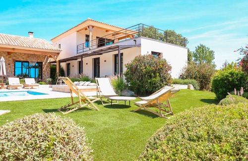 Esta villa de ensueño se encuentra a solo 7 minutos de la playa de Pinarello, en un entorno idílico y tranquilo.