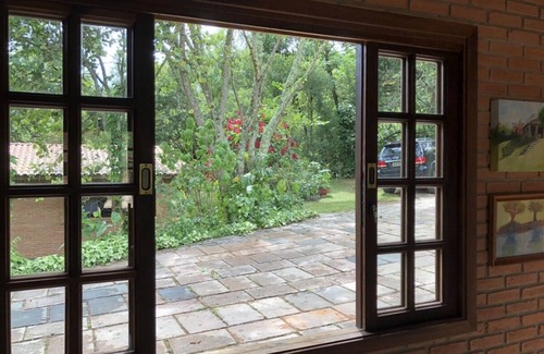 La casa de campo se encuentra en un paisaje montañoso y al borde de la presa de Jaguari. Tiene un balcón con esta hermosa vista y una barbacoa. Rodeado de bosques. Las habitaciones son suites y grandes. Las habitaciones son amplias y acogedoras. Con una gran chimenea para los días fríos. La cocina es maravillosa. Grande con horno de leña, horno de pizza. La sala de desayunos con ventanas de cristal da al bosque. El hogar propicia escapar del estrés y tener momentos de paz e instalaciones gourmet.