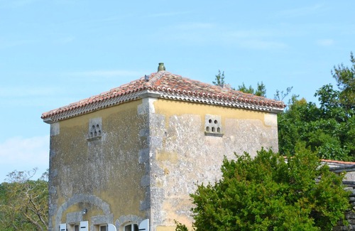 El palomar está en una antigua granja Charentaise en una propiedad de 30 ha. Esta casa de Charentais es atípica en el sentido de que está "abierta" al campo (sin paredes altas cerradas alrededor de los edificios).