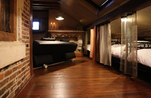 En la cocina totalmente equipada del cocinero aficionado puede jugar al contenido de su corazón. El fuego Falcon con tres hornos y cinco cocina de inducción es el corazón. Además, la cocina está equipada con un retro Smeg nevera y lavavajillas, microondas y dos grifos de agua. Algunos productos como la pimienta, sal, especias, azúcar, aceite, harina de harina y vinagre disponible. La estufa de leña hace que sea cálido y acogedor.