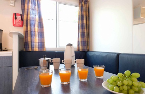 Casa vacacional con aire acondicionado, piscina y sauna Su alojamiento turísticoCategoría del país 4 estrellas. La casa vacacional está rodeada por un cerrado terreno de jardín con prado, árboles, flores y arbustos. Para uso a su disposición: recepción, internet (WLAN), restaurante (1), supermercado, lavandería, bar, cafetería, parque infantil, césped, sombrilla, tumbona, muebles de jardín y barbacoa. animación infantil. Piscina exterior para el uso común (climatizada) y piscina para niños en la piscina exterior (climatizada). La instalación de la piscina esta operativa desde mediados de junio hasta finales de agosto. dos piscinas, una de ellas parcialmente climatizada para niños y adultos, equipada con tumbonas y sombrillas (sujeto a disponibilidad), laguna infantil parcialmente climatizada, piscinas abiertas según condiciones climáticas sauna, futbolín y tenis de mesa. Otros equipamientos: Previo cargo: centro de bienestar con biosauna, sauna finlandesa y sauna de infrarrojos. Ducha para perros y curso de agility Animación infantil del 1 de julio de 2024 al 31 de agosto de 2024, 2 parques infantiles al aire libre, pequeña granja educativa, pequeña biblioteca, mesas de ping-pong, cancha de fútbol, aro de baloncesto, bádmington, redes de voleibol, juegos acuáticos; previo pago: caballos con carruaje, alquiler de bicicletas en Intersport Pintar en Murau (a 20 km), campo de golf a 20 km Su caravanacaravana, 1 planta, 4 habitaciones (de los cuales 3 dormitorios), 32 m², 7 personas. Aire acondicionado. Entrada al salón/dormitorio. 2 Dormitorio respectivamente con 2 camas individuales. Dormitorio con 1 cama doble. Salón/dormitorio con 1 cama adicional, zona de comedor (7 plazas), acceso a la terraza (cubierto, muebles de jardín, 1 mesa, 2 tumbonas) y espacio adicional para dormir en la sala de estar, representado por el asiento con cojines alrededor de la mesa del comedor. Rincón cocina con cocina de gas (4 fuegos), campana extractora de humos, nevera (congelador), microonda y cafetera. Baño con ducha y 1 lavabo. Wáter separado con 1 lavabo y inodoro.En la casa vacacional está prohibido fumar. Animal domésticopermitido, EUR 8.00/Animal doméstico y día. UbicaciónSt. Peter am Kammersberg. La casa vacacional moderna, en estilo típico de la región y convenientemente equipada (casa móvil) se encuentra separada, en un camping, cerca del bosque y en una tranquila y una soleada ubicación. Vista de la propiedad sobre los bosques. El paisaje típico austriaco caracteriza a este hotel situado a 800 m de altitud en Katschtal. Rodeado de naturaleza virgen, entre bosques, arroyos, lagos, montañas y castillos característicos, es el lugar ideal tanto para unas vacaciones relajantes como para quienes gustan de llenar sus días con diversas actividades. El acceso se realiza por una calle secundaria (asfaltado). Aparcamiento en la propiedad (para 1 coche). Compras 2 km, restaurante 200 m, centro de la localidad 2 km. médico en Eselsberg 9,5 km. farmacia en Murau 17,4 km. banco en Peterdorf 2,6 km. estación de tren en Triebendorf 11,6 km. aeropuerto en Wien 257 km. St. Peter am Kammersberg, a pocos minutos del camping; las cercanas cascadas de Günstner (13 km), escalada en Oberwolz (15 km), museo de la cerveza y tren de vapor en Murau (20 km) y ciclismo en Krakau Schatten (20 km), museo de la madera en St. Ruprecht en Murau (30 km), Nockyflitzer en Turracher Hohe (60 km), Red Bull Ring en Spielberg (60 km) En el veranotenis en Murau 17,4 km. Cascada Günstner a 5 km. Bosque de cuento de hadas de Estiria a 40 km Condiciones y preciosEn el precio incluidopiscina exterior, acceso de internet, electricidad, gas, agua. Costes adicionales-Costes en el lugar/destino:/Obligatorio:limpieza final si animal doméstico 20 € por objeto/alojamiento por estancia. limpieza final (si no se realiza por el arrendatario) 40 € por objeto/alojamiento por estancia. póliza de turismo según la tarifa del lugar.A petición:aire acondicionado 5 € por objeto/alojamiento por día. ropa de cama (pedir con la reserva por favor) 15 € por persona por primera ocupación y cambio. toallas (se ruegar reservar en el momento de la reserva) 10 € por persona por primera ocupación y cambio. cuna - pedir con la reserva 3 € por cama por día. silla alta para niños pequeños - pedir con la reserva por favor 3 € por parte por día. gegen Gebühr: estacionamiento, estacionamiento (adicicional).Fianza:100 Euro