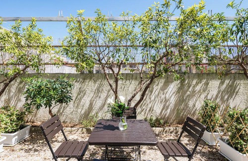 Nel terrazzo personale e riservato, accessibile direttamente dalla cucina, è presente un pratico tavolo pieghevole e comode sedie, perfetto per godere di momenti all'aria aperta in tutta comodità. Dal terrazzo personale, si accede, al giardino comune, questo spazio offre un ulteriore spazio ombreggiato all’aperto.