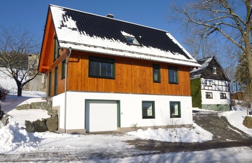 Nueva casa de vacaciones cerca de las pistas de esquí, del parque de atracciones y de rutas de senderismo con capacidad para 7 personas con 135 m² de superficie habitable. La casa es adecuada para asmáticos y alérgicos, la planta baja está libre de barreras. Las instalaciones incluyen una sala de estar con chimenea, TV vía satélite, reproductor de VD, equipo de música CD y radio. Acceso gratuito a teléfono e Internet, cocina totalmente equipada, así como una habitación individual y tres habitaciones dobles que se pueden oscurecer completamente y equipar con mosquiteras. Hay un sofá cama en el dormitorio familiar. Hay 2 baños con ducha y WC, uno de ellos accesible para sillas de ruedas. Amplio baño con bañera y ducha y dos lavabos individuales. Disfrute de sus vacaciones en la terraza (orientada al oeste) con chimenea y zona de barbacoa.