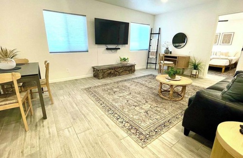 Al instalarte en este alojamiento de 2 dormitorios y 1 baño, encontrarás una zona para barbacoas y aire acondicionado. El cuarto de baño incluye toallas, papel higiénico y jabón. La cocina está equipada con horno, placa de cocina y frigorífico, además de cafetera y tetera, utensilios de cocina y papel de cocina. Y no tendrás que llevarte ropa de más, porque podrás aprovechar la lavadora y la secadora.