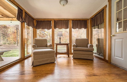 Cuando ingrese a la entrada privada del Cedar Lodge, se sentirá inspirado por los susurros del murmullo del arroyo que atraviesa la propiedad. Esta casa de cuatro dormitorios y dos baños con dos salas de estar separadas está magníficamente decorada con un tema rústico. Al entrar en la casa, se encuentra con una enorme chimenea decorativa de dos lados rodeada de hermosa piedra. La cocina moderna totalmente equipada con comedor está forrada con ventanas de piso a techo que seguramente le permitirán echar un vistazo a la vida silvestre del área al comenzar su día en el Cedar Lodge. Las amplias salas de estar con pisos de madera son los lugares perfectos para tomar un libro, ver su programa de televisión favorito o simplemente relajarse con la familia. El primer piso también ofrece un dormitorio, baño, área de lavandería y barra de piedra. El nivel superior de la casa está acentuado con hermosos pisos de madera dura con tres dormitorios y un baño completo. La piedra natural y el interior de madera rústica en toda la casa seguramente tranquilizarán su cuerpo y mente. Después de un día lleno de aventuras en Ohiopyle, ¡el patio trasero es el lugar perfecto para que su grupo se relaje! El Stony Fork Creek limita con la propiedad y ofrece tranquilas áreas para sentarse en la propiedad. ¡Hay una amplia terraza que da al patio trasero y alberga una gran mesa de picnic y una parrilla de carbón para el entretenimiento al aire libre! ¡También hay una hoguera de piedra y un área de herradura para que sus invitados se relajen y consigan ese timbre! Una estancia en el Cedar Lodge seguramente creará recuerdos duraderos para todo su grupo.