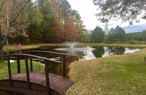 El pequeño estanque de Virginia ofrece pesca de captura y liberación, perfecta para adultos y niños pequeños ... traiga su propio equipo de pesca. Un puente curvo conduce a la isla y la pérgola cerca de la fuente en el estanque, lo que lo convierte en el escenario perfecto para fotos, bodas pequeñas u otros eventos al aire libre (según la aprobación de los propietarios).