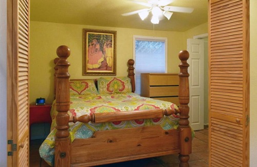 Acogedora y encantadora casita recientemente renovada con pisos de baldosas mexicanas de Saltillo y encimeras. La casita es privada, muy cómoda y excelente para caminar a muchos destinos. Es una habitación con cama queen size, nuevo sofá cama queen size con espuma viscoelástica para mayor comodidad. Cocina completamente equipada, lavadora y secadora, televisión por cable con reproductor de blue ray y servicio de internet. Enormes ventanas que se abren para mucha luz natural y están decoradas con muebles exóticos del suroeste. Vivienda unifamiliar privada en un hermoso y tranquilo vecindario con enormes árboles. Casita puede alojar cómodamente a tres personas. Se admiten perros Un perro permitido.
