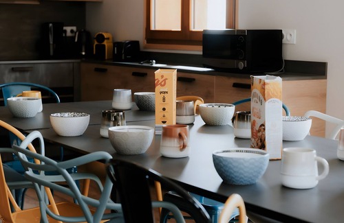 Located in Fontcouverte-la-Toussuire, this 120 sqm chalet accommodates up to 14 guests across 4 bedrooms and 1 bathroom spread over 3 floors. You will find a well-equipped private kitchen, private WiFi, TV, and dedicated workspace. Family amenities include a baby bed, highchair, and shared toys and books for children. The property offers ski-in/ski-out access, and an e-bike is provided for your use.