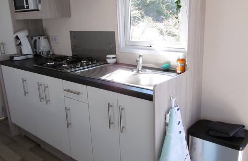 Apto para un máximo de 4 adultos: 1 dormitorio separado con una cama doble fija (140 x 200) y armarios para su ropa y equipaje, y en la sala de estar 1 sofá convertible (150 x 225) apto para 2 personas. Mantas y edredones están presentes en el chalet, así como la ropa de cama asociada una vez (los costos para esto están incluidos en los costos de limpieza o servicio). Si necesita un paquete nuevo durante su estadía, podemos organizarlo por un costo adicional por paquete. Nota: las toallas de baño no están disponibles. También hay un comedor con una mesa plegable y 4 sillas, una cocina completa con cocina a gas, nevera, microondas, cafetera (senseo), hervidor, utensilios de cocina, sartenes, platos, tazas, platos, cristalería y cubiertos. También hay toallas de cocina y cosas para mantener el chalet limpio, una pequeña aspiradora, un tazón para lavar, un cepillo y esponjas. Hay un radio / reproductor de CD. TV con canales vía satélite gratuitos (astra 1,2 y 3). En el exterior hay dos maravillosas tumbonas para relajarse, una zona de estar con 4 sillas, una mesa y una sombrilla y una pequeña barbacoa que se puede usar. Para los días más fríos, el chalet cuenta con un calentador de gas para que pueda calentarse en cualquier lugar. El chalet también tiene un amplio baño con inodoro, ducha con agua caliente y un lavabo con espejo. En resumen, un maravilloso refugio en un bonito camping cerca de la playa.