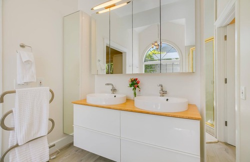 Escape to a stunning farmhouse in Ojai, perfect for a relaxing retreat. Located just 10 minutes from downtown, hiking trails, and wineries, this elegant home allows you to easily explore all that Ojai has to offer while enjoying its tranquility. This charming 2-bedroom getaway features a king bed, a queen bed, and a cozy living room equipped with a sofa bed. With two bathrooms for added convenience, the serene surroundings make it an ideal destination for unwinding.