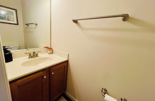 The full bathroom upstairs is sleek and modern, with high-quality fixtures, a bathtub, and all the essentials you need to start or end your day refreshed. Downstairs, you’ll find a convenient half bath, ensuring that everyone has enough space to get ready in the morning.