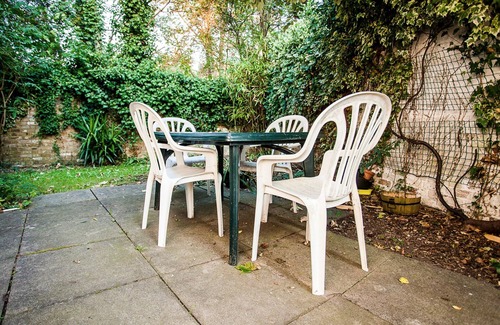 Las puertas dobles de cristal conducen a un precioso jardín privado grande en la parte trasera - fantástico para pasar unos días soleados fuera o incluso tener una taza de café por la mañana.