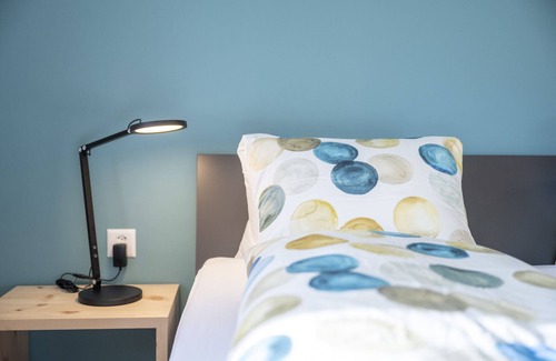 The flat is also ideally equipped for children. A practically furnished children's room, with a bunk bed and a second pull-out single bed, is located right next to the smartly furnished parents' bedroom with a double bed. The flat is also equipped with many board games and a smart TV. Perfect for spending time with your loved ones after an eventful day.
