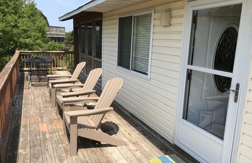 The Wave Den es una pintoresca casa de 4 dormitorios recientemente reformada, situada en una calle sin salida privada rodeada de robles en el encantador Sound and Sea Village of Duck. Con solo 5 minutos a pie (1,000 pies) de una de las mejores (y más amigables para perros) playas en Outer Banks, se asegurará de hacer muchos buenos recuerdos. Hay un amplio espacio al aire libre para saborear la cálida luz del sol y la brisa fresca del océano durante los meses de primavera, verano y otoño. Y, si hace demasiado calor, hay un área sombreada debajo de la casa para que los niños jueguen y la familia se reúna alrededor de la parrilla para cenar al aire libre. El porche con mosquitero es el lugar perfecto para disfrutar tranquilamente de una taza de café cada mañana o beber una copa de vino por la noche. The Sound (hermosas puestas de sol) está a pocos pasos de distancia. El sendero para caminar / andar en bicicleta es ideal para hacer ejercicio, pasear al perro o andar en bicicleta por la ciudad de Duck. Es el refugio ideal al lado del océano para refrescarse y descansar.