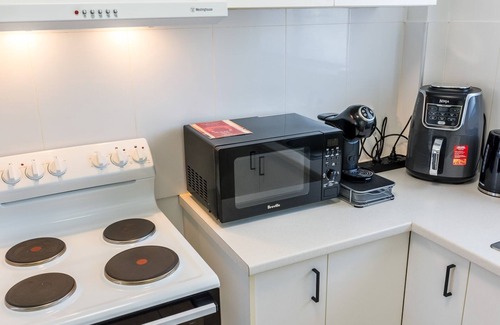 Este alojamiento de 2 dormitorios y 1 baño cuenta con una sala de estar, un comedor y aire acondicionado. Conéctate al wifi gratis, o relájate frente a un Smart TV. El cuarto de baño incluye un secador de pelo y toallas. Prepara una comida casera en la cocina, equipada con horno, placa de cocina y frigorífico, además de cafetera y tetera, microondas y utensilios de cocina. Y no tendrás que llevarte ropa de más, porque podrás aprovechar la lavadora y la secadora. Otras comodidades incluyen ropa de cama, una tabla de planchar, calefacción y una mesa de comedor.