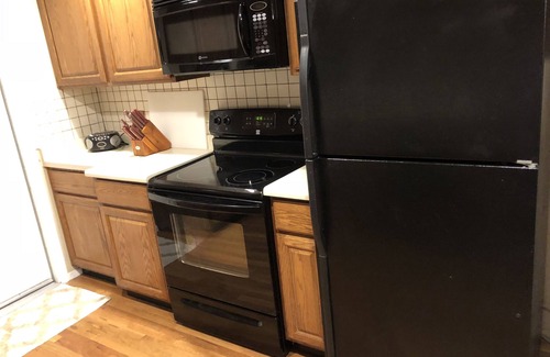 Esta es una casa de cuatro habitaciones completamente amueblada con pisos de madera en todo el nivel superior. La gran cocina espaciosa está bien equipada e incluye lavavajillas, cafetera, tostadora, licuadora y muchos platos. Un pequeño "Honor Mart" que utiliza el sistema de honores para las compras ofrece refrigerios amigables para los niños y comida connivencia como Kraft Mac y Cheese, Spaghetti-O's, barras de granola. Echa un vistazo al congelador, hay algunas opciones también, como pizza y helados. Para los adultos hay varios menús de restaurantes locales que mi esposo y yo disfrutamos y también algunos que ofrecen. Saque y disfrute de la comida que le guste en la comodidad de su hogar, o si el clima lo permite, coma en la terraza recién remodelada. Ubicada a la sombra de varios árboles grandes, la cubierta es un lugar perfecto para reunirse en el verano. La casa ofrece una gran sala en el sótano que se puede configurar para satisfacer sus necesidades. Puede dejarse vacío y usarse como una litera de saco de dormir, un espacio de juego o una sala sensorial personalizada para niños con necesidades especiales. El vecindario está cerca de Kelly Walsh High School, el centro comercial, tiendas del lado este, restaurantes, Hobby Lobby, varias tiendas de abarrotes, Walmart al este, Sam's Club y un corto viaje al Casper Events Center. El garaje para un solo automóvil es lo suficientemente grande para la mayoría de los SUV, como un Honda Pilot y tiene un abridor remoto. Si va a visitar Casper por más de dos semanas, contáctenos por una tarifa reducida.