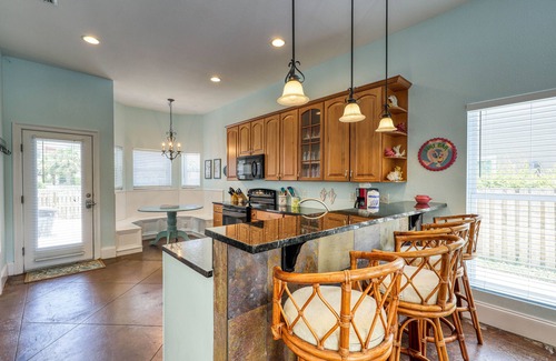 El confort costero abunda cuando reserve una estancia en esta encantadora casa en el Florida Panhandle! Adornado con una colorida decoración tropical, un balcón cubierto y una piscina privada y comunitaria, este alquiler de vacaciones tiene todo lo que necesita para dejar sus preocupaciones atrás y relajarse.