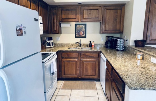 Este condominio cuenta con sala de ejercicio en el sitio, piscina y spa (año alrededor), cocinas totalmente equipadas, encimeras de granito, lavadora y secadora de tamaño completo y más.