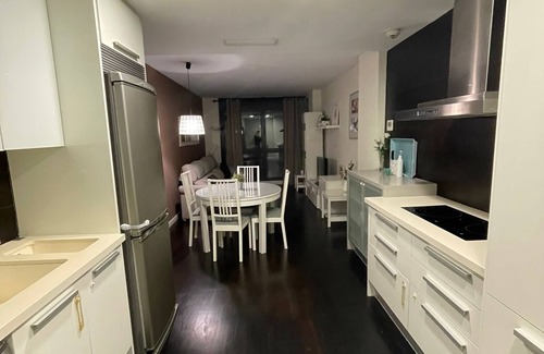 -Junto al salón-comedor se encuentra la cocina con todos los electrodomésticos necesarios: frigorífico, lavadora, secadora, horno, microondas, lavavajillas....