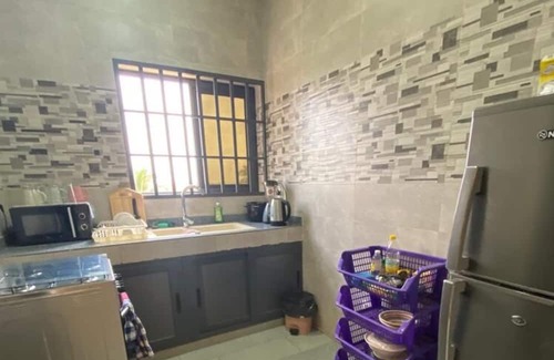 Cosy, peaceful and large studio in Lomé offered to you for your short or long stay. The studio has a fully equipped kitchen and an ensuite WC/Shower room. It is located in a quiet neighborhood and close to all commodities (restaurants, pharmacy, banks...). The place is air-conditioned, has a fan ceiling and a mini- balcony where you can relax.