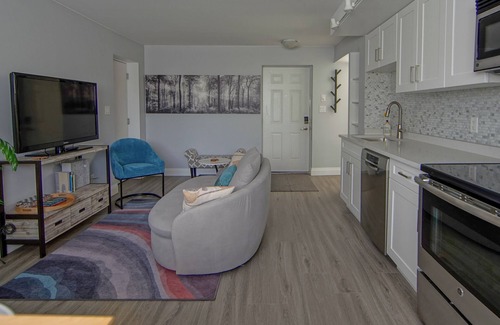 Esta casa de vacaciones de North Vancouver con 1 dormitorio y 1 baño, en el centro, te permitirá disfrutar de todo tipo de actividades. A los amantes de la naturaleza y el aire libre les encantará estar a 8min en coche de Parque Stanley y a 4min de Puente de suspensión Capilano. Estarás a 5min en coche de Mercado de Lonsdale Quay y a 5min también en coche de Terminal Lonsdale Quay Seabus.